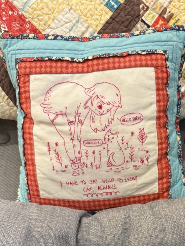 Lots of little thingsWitch Hat RealnessCarry-all BagHST pillow for JonathanBaylor pillow for MerI ❤ KC pillowShuttlecock embroideryPlacemats for MaryI must say hello to every cat. always.Kitties pillowR&R pillowFletcher blanketWedding Party PillowsOwl StuffyMaddie stocking R&R and Dot stockings